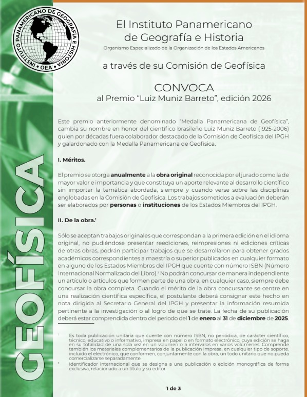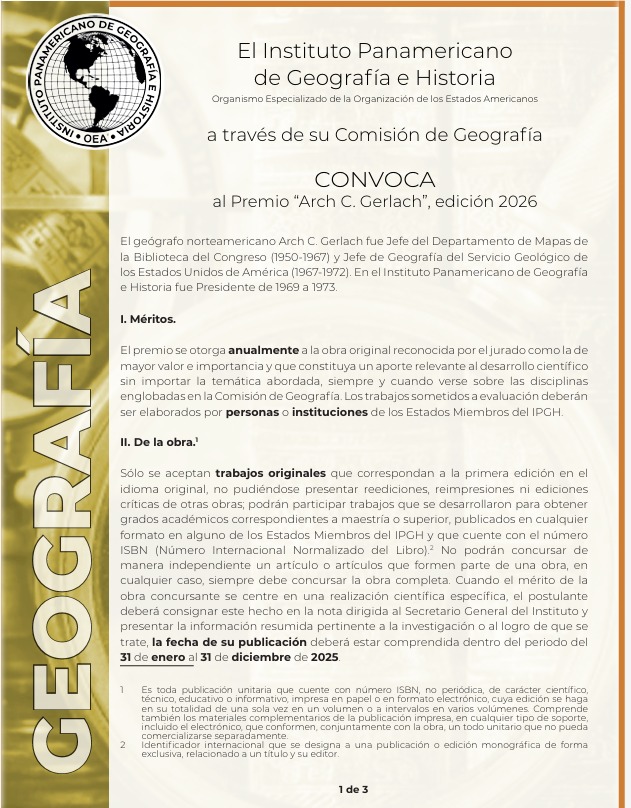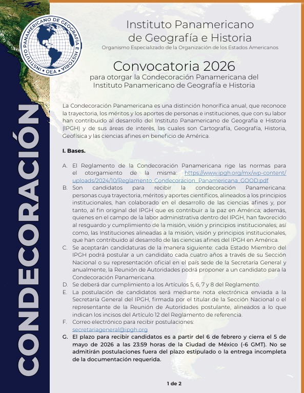 CONVOCATORIA- Para otorgamiento de la condecoración Panamericana del Instituto Panamericano de Geografía e Historia, edición 2026