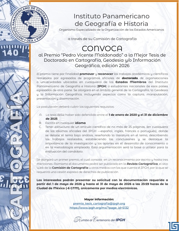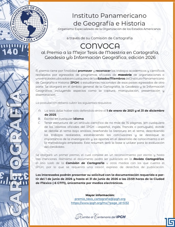 CONVOCATORIA - Premio a la Mejor Tesis de Maestría en Cartografía, Geodesia y/o Información Geográfica, edición 2026